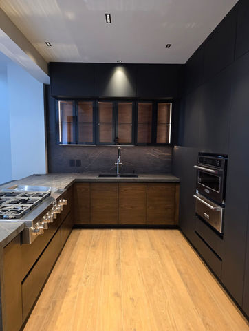 Cada elemento fue cuidadosamente diseñado e instalado para lograr un espacio integral, donde la calidad en los materiales y la precisión en la carpintería reflejan un trabajo hecho a medida, pensado para durar y destacar.
